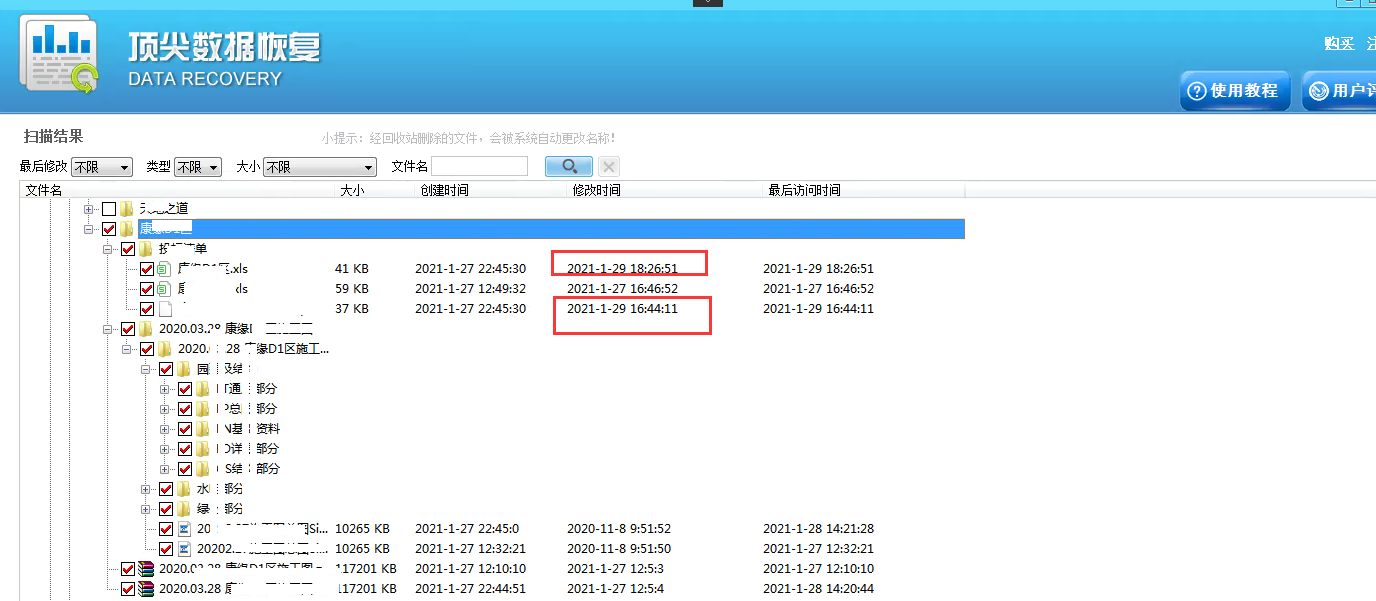 软件开始扫描,扫找所有文件后,和客户确定数据后。