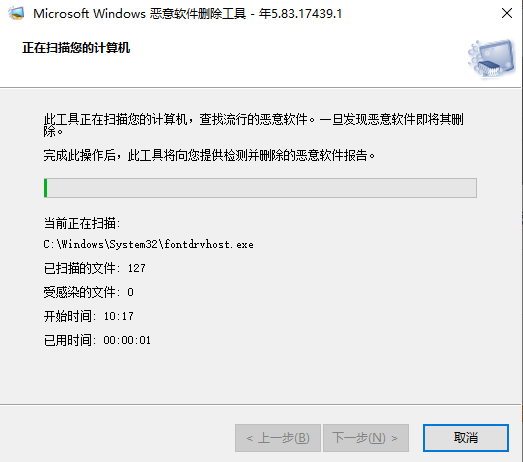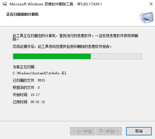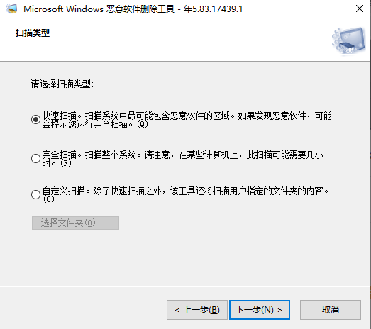 打开windwos恶意软件删除工具,版本是5.83.17439.1