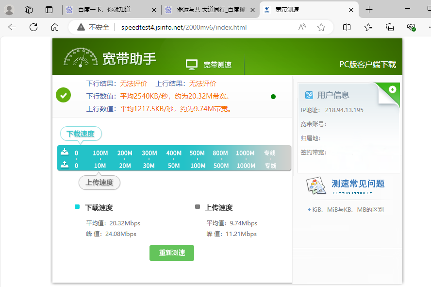 100兆专线,测试出来20兆带宽