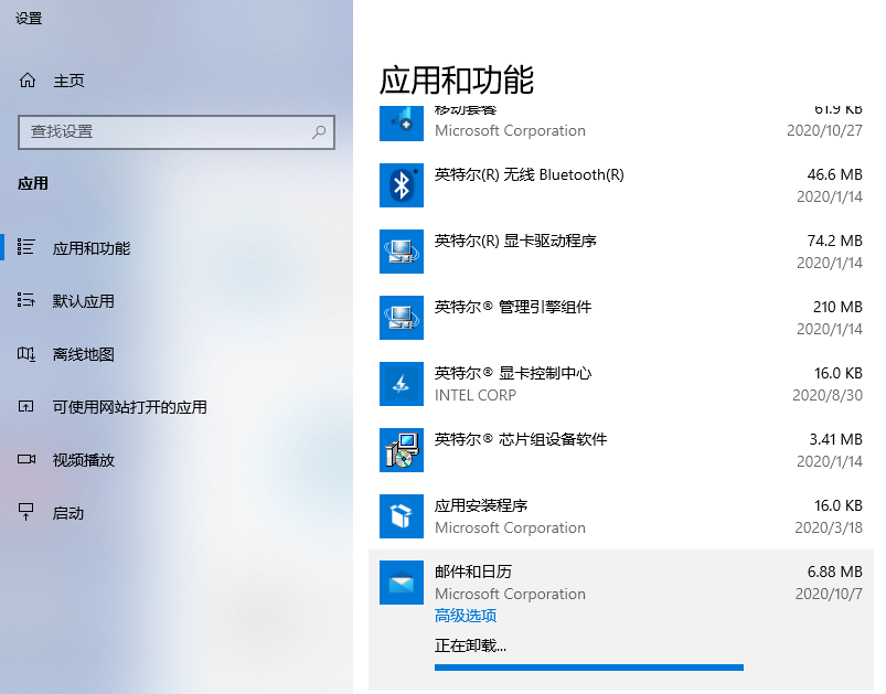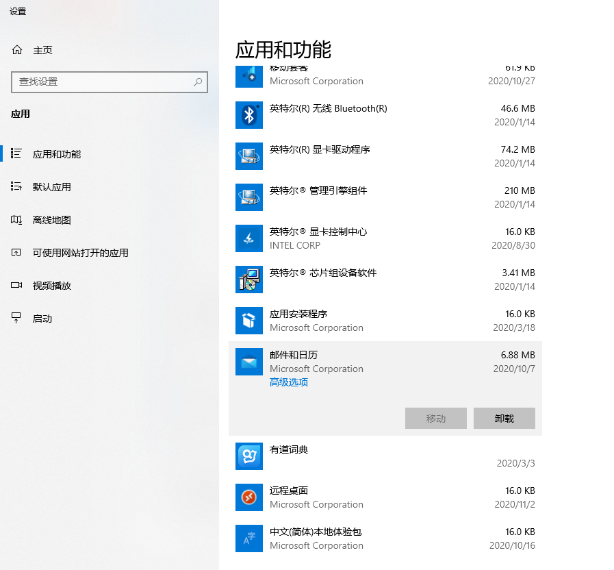 5、找到设置,在应用和功能中,找到邮件和日历。