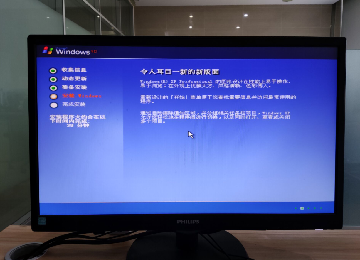 镜像文件复制完成后,重新启动电脑,开始进行对windiows xp系统的基本配置。
