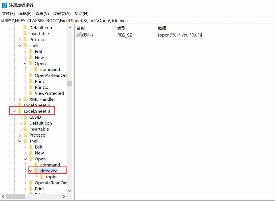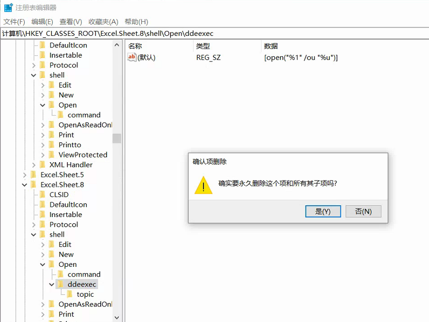 也将Excel.Sheet.8下面的ddeexce文件删除。